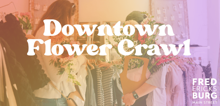 The 4th Annual Downtown Flower Crawl is back on Saturday, May 9th! This beloved spring tradition turns a stroll through Downtown Fredericksburg into a floral adventure. Grab your official carrier at check-in, then visit participating shops to collect fresh flowers and greenery at each stop. By the end of the afternoon, you'll head home with a gorgeous custom bouquet you built yourself. It's the perfect girls' day, date night, or family outing while supporting the local businesses that make this community so special.