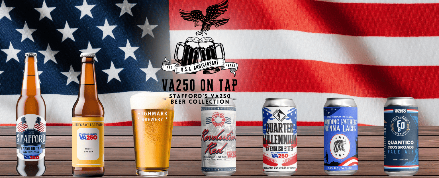 Virginia is turning 250 and Stafford's local breweries are marking the occasion in the best way possible. The VA250 on Tap collection features special limited edition beers crafted by seven local breweries, each one inspired by the history and spirit of the Commonwealth. From Full Distance Brewing's Quantico Cross Roads Pale Ale to 6 Bears and A Goat's Revolutionary Red, every pint tells a story. You can even grab a limited edition VA250 growler at participating breweries while supplies last and score a discount every time you fill it up.